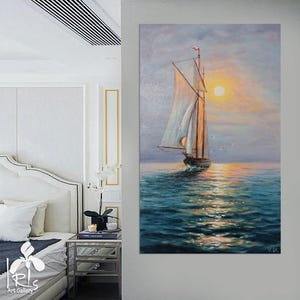 Light beige grey, stylish, high texture handmade abstract seascape for living room and bedroom. This three-dimensional painting with a velvety texture, made by hand on canvas, will brightly decorate your interior, harmoniously make it even more beautiful and cozy.