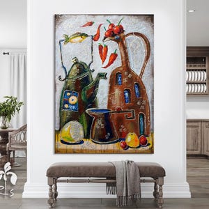 Oil painting on canvas for the kitchen. Dining room. Painting in the bar. Bright abstract painting for the living room.