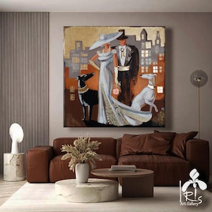 Blerina - very delicate, modern, abstract, minimalistic, very stylish, original, textured, hand-painted in an abstract minimalist style, painted on natural canvas with high-quality oil and acrylic paints and gold leaf. The combination of classic colors of black, beige and gold, and an abstract image of a ballerina make this painting a subtle, stylish, exclusive decoration for your interior. The velvety texture of this painting perfectly emphasizes the original storyline, permeated with kindness and love. This is a very light, subtle Scandinavian painting. With this art, your home will become even more elegant and comfortable.
