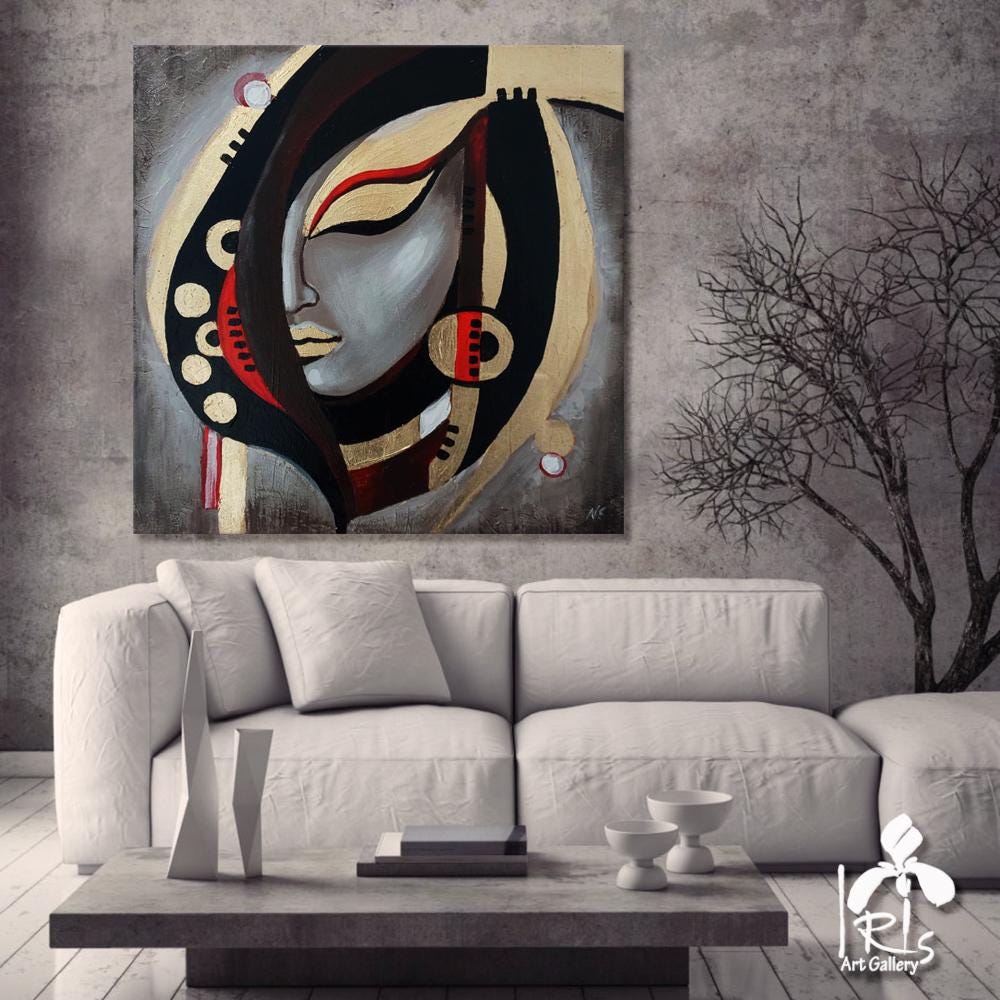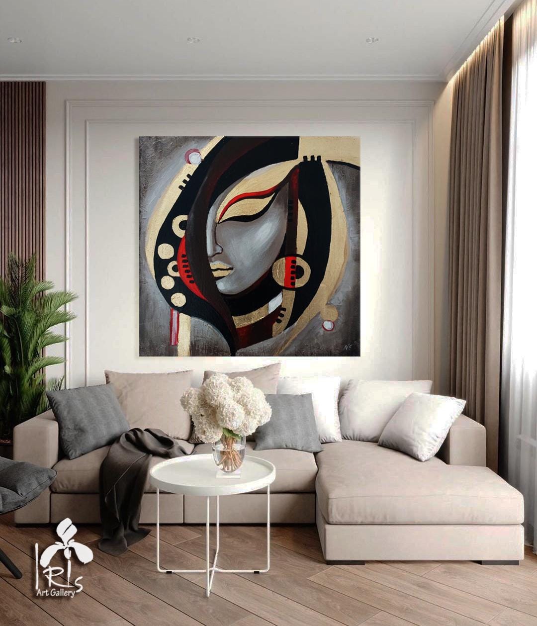 "Abstract Female Face" is a contemporary, abstract, textured, handmade painting painted on natural canvas with high-quality oil and acrylic paints. An abstract, romantic lady in beige tones. This very light and graceful painting will bring radiance and beauty to your interior. It will also make a wonderful gift for your family and friends for any occasion.