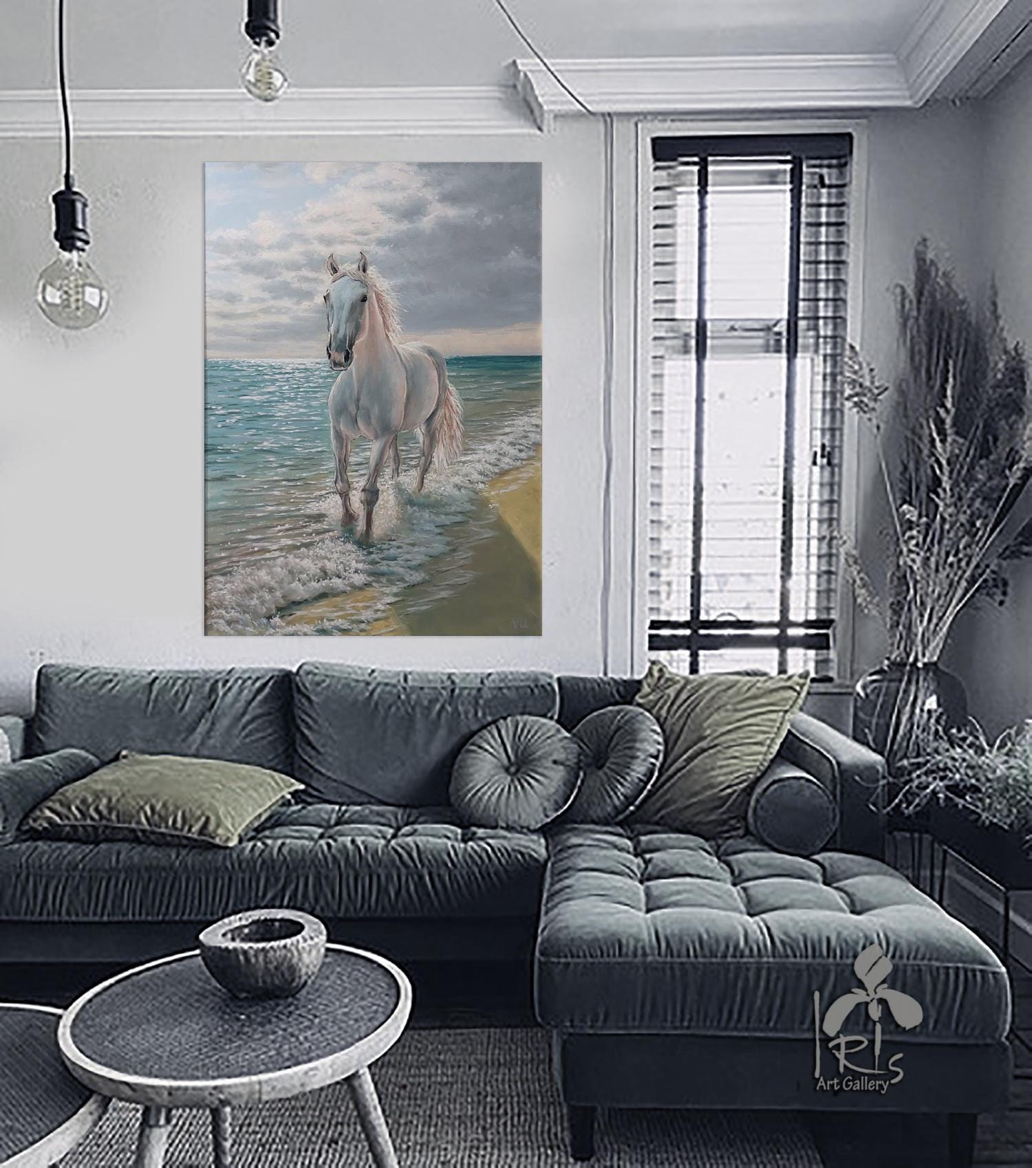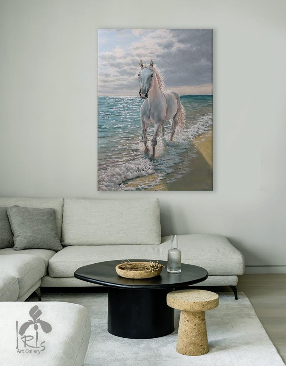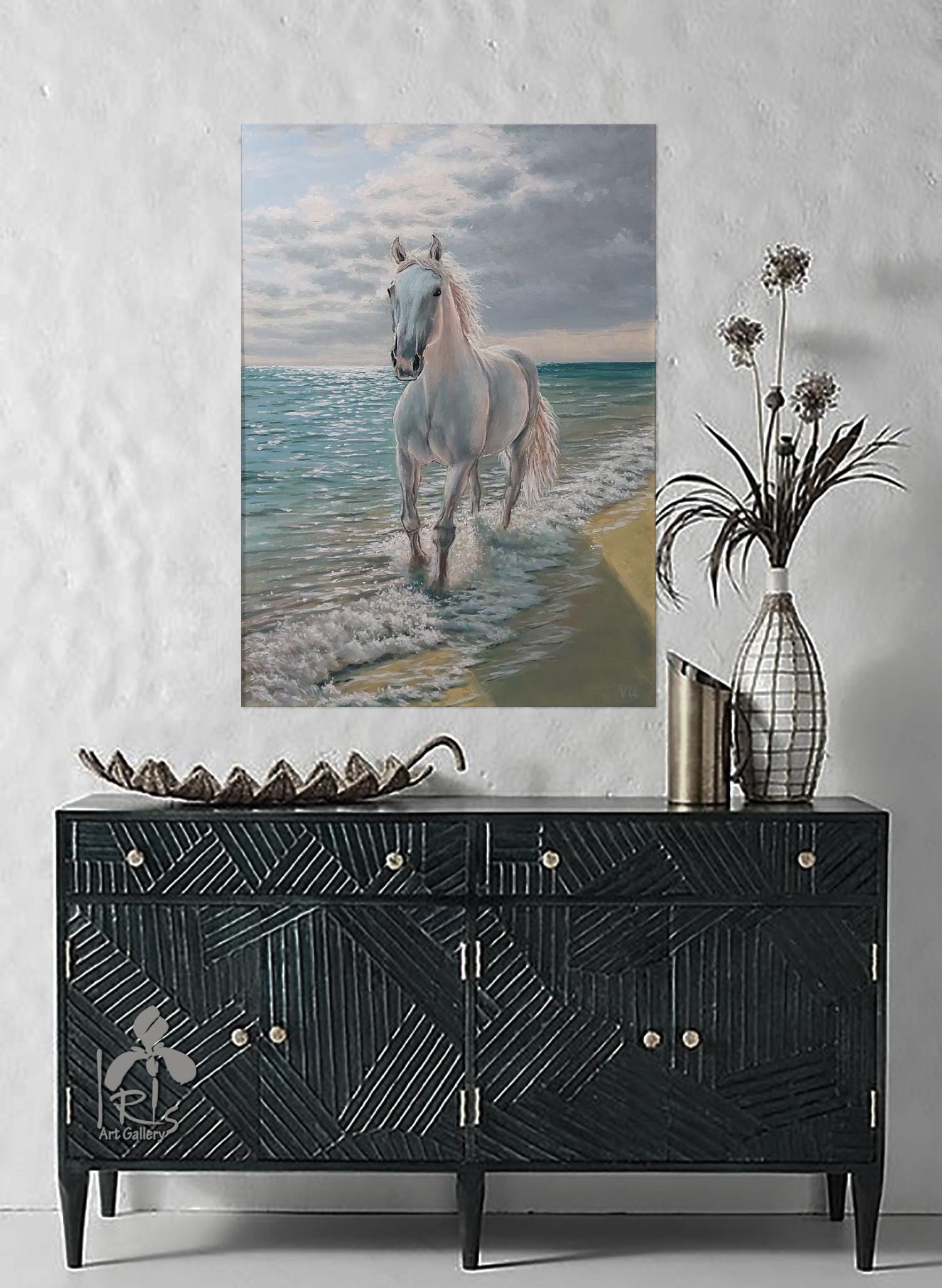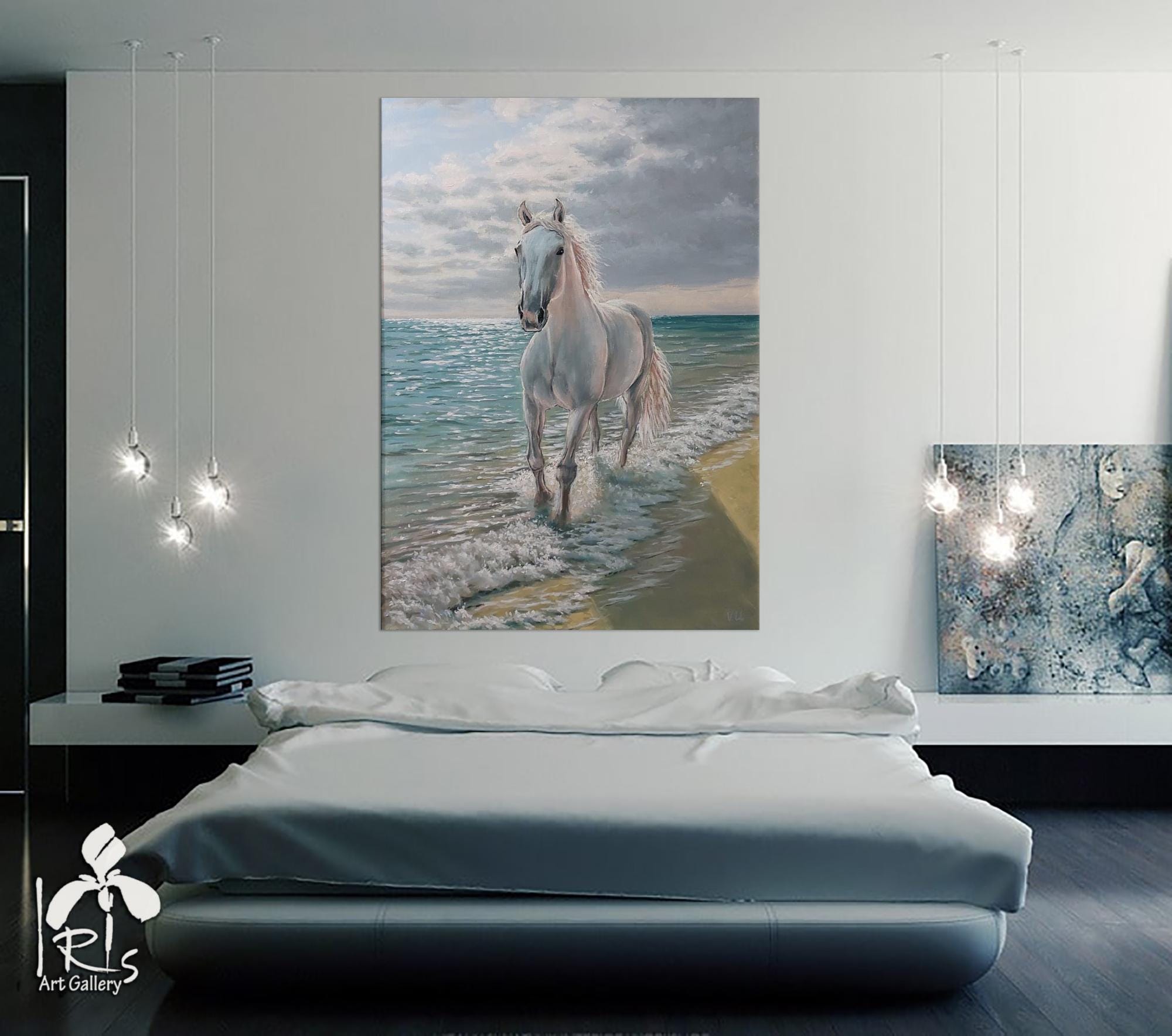 "Running White Horse by the Sea" is a modern, realistic, stylish, original, and exquisitely delicate handmade painting, painted on natural canvas with high-quality oil and acrylic paints. The classic combination of turquoise, beige, and white colors and the beautiful image of a running horse will make this painting a stylish, exclusive addition to your interior. Perfect for a living room, bedroom, dining room, or hallway, this painting will also make a wonderful gift for your family and friends for any occasion.