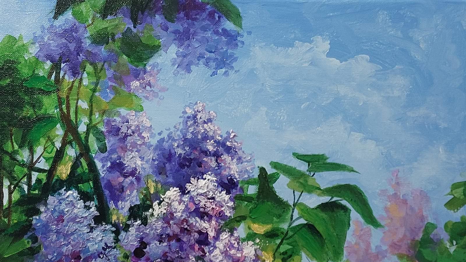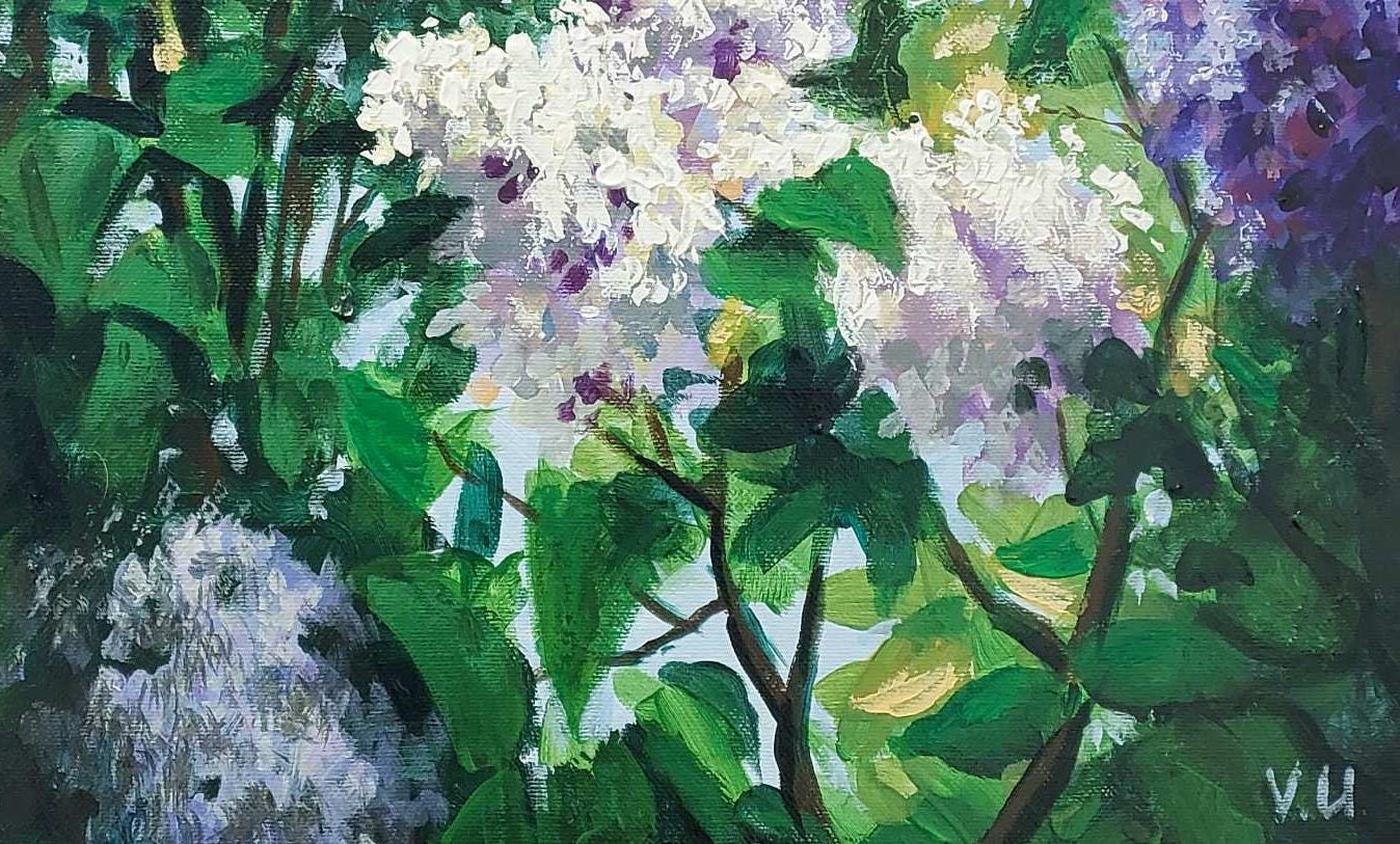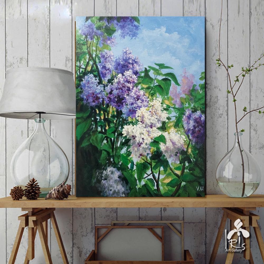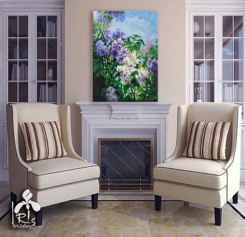 "Blooming Lilac" is an original contemporary painting, hand-painted with high-quality oil on natural cotton canvas. The lilac is painted in an impressionist style using the impasto technique. This is a very stylish, delicate, and striking painting in a light lilac color with subtle dark accents. Thanks to its velvety texture and the captivating depiction of beautiful lilac flowers, this painting will blend wonderfully into your interior, filling it with the joyful colors of spring, warmth, and comfort. Lilac makes a wonderful gift for family and friends. This flower brings prosperity and good luck to the home.