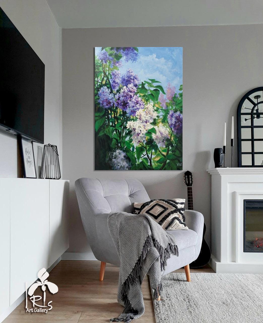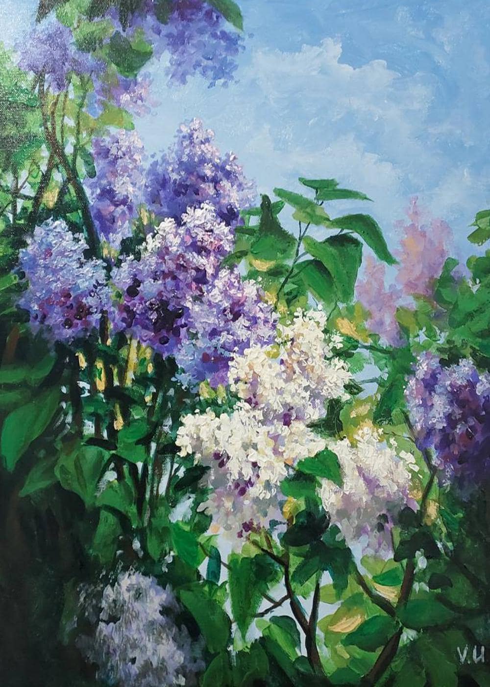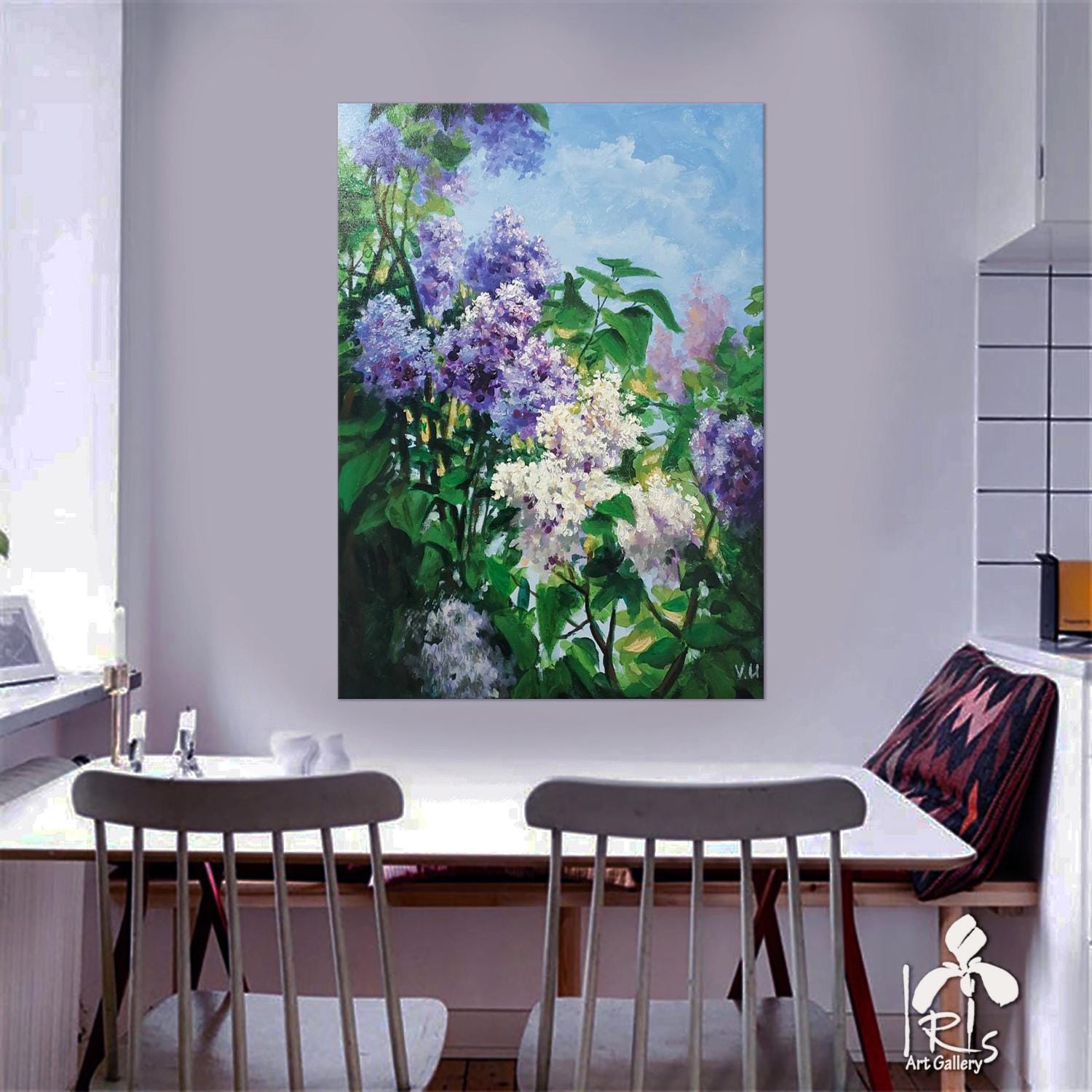 "Blooming Lilac" is an original contemporary painting, hand-painted with high-quality oil on natural cotton canvas. The lilac is painted in an impressionist style using the impasto technique. This is a very stylish, delicate, and striking painting in a light lilac color with subtle dark accents. Thanks to its velvety texture and the captivating depiction of beautiful lilac flowers, this painting will blend wonderfully into your interior, filling it with the joyful colors of spring, warmth, and comfort. Lilac makes a wonderful gift for family and friends. This flower brings prosperity and good luck to the home.