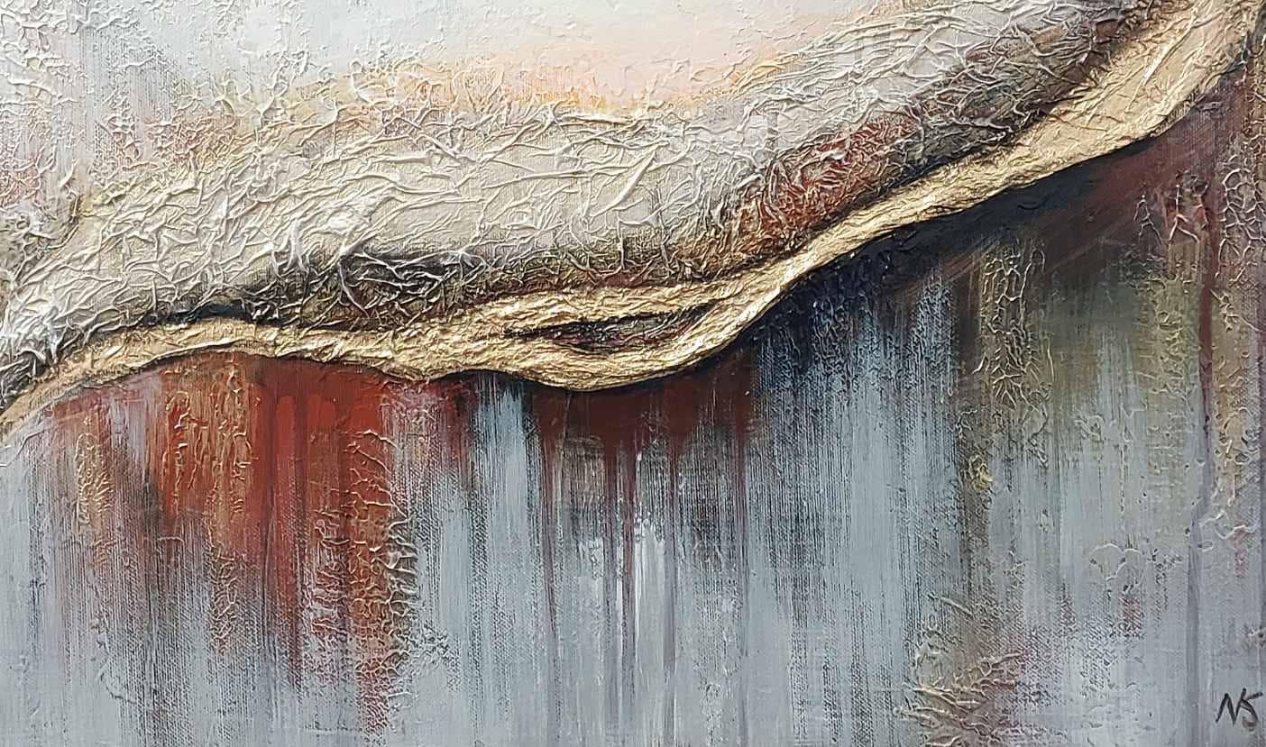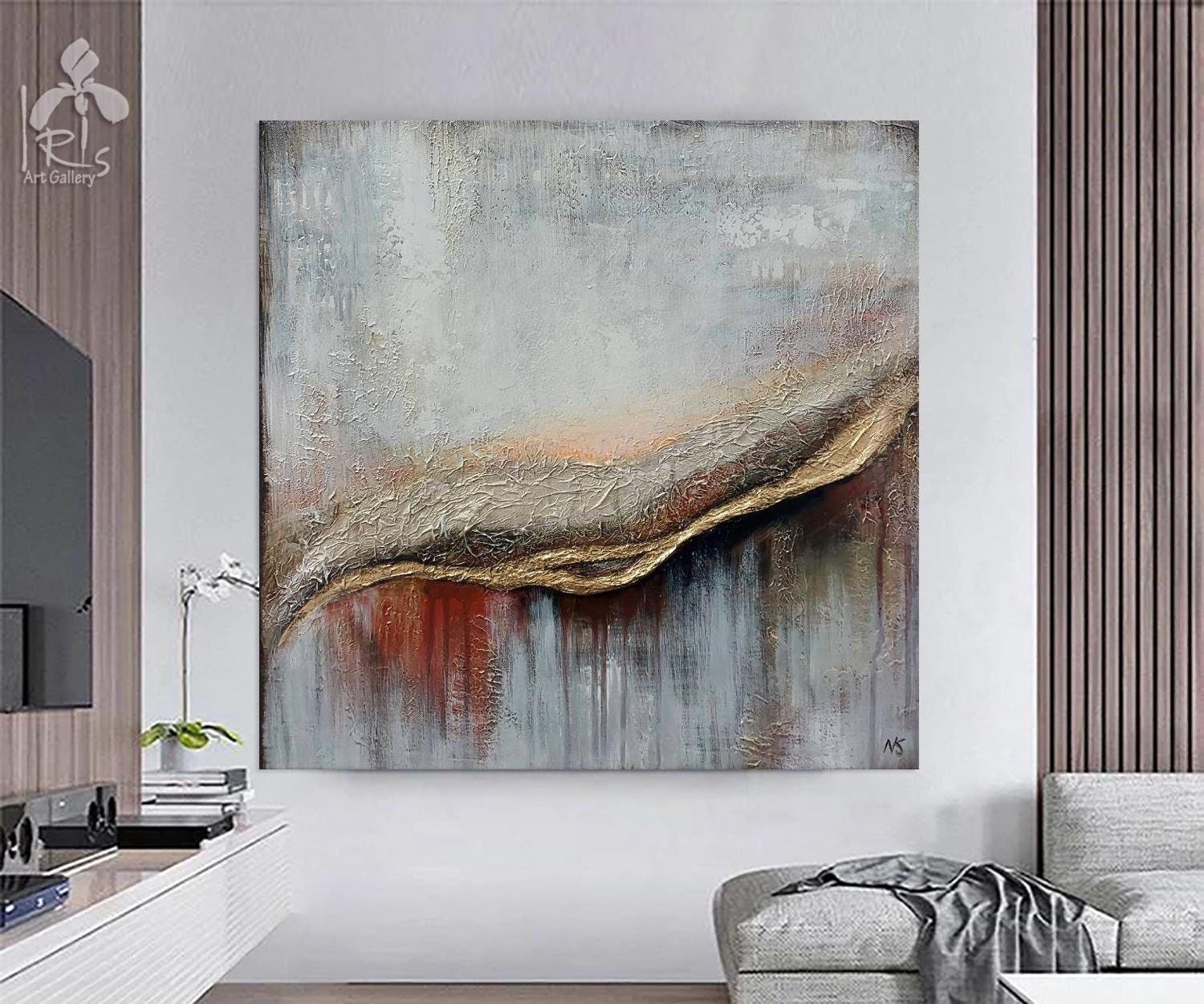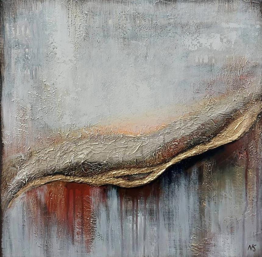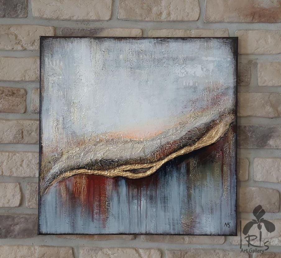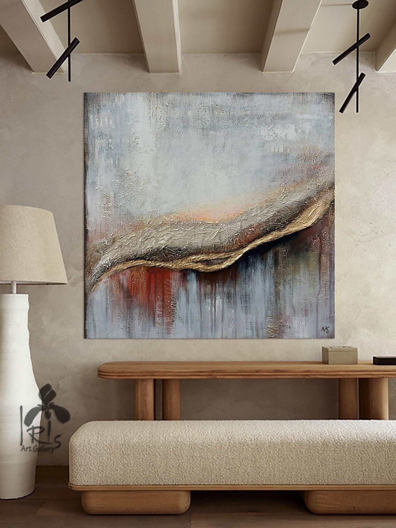 Abstract Sea is an original, abstract, textured 3D painting, a very stylish work, hand-painted on natural canvas with high-quality oil and acrylic paints and gold accents using a unique, signature textured technique. This beautiful textured 3D painting, in elegant gray, white, beige, and black tones with subtle accents of gold and mother-of-pearl, depicts an abstract seascape and will leave you speechless. The painting features beautiful abstract images of the seashore and water, symbolizing the beginning of life and eternity. The original, intricate 3D texture perfectly complements the subject matter, making it even more captivating. The vibrant yet stylish palette evokes positivity and tranquility. This painting will perfectly complement your interior, adding elegance and exclusivity to your home. You can order a painting of any size, which will become the highlight of your interior. The painting is executed in a minimalist abstract style with a complex collage design. If you require a different size,