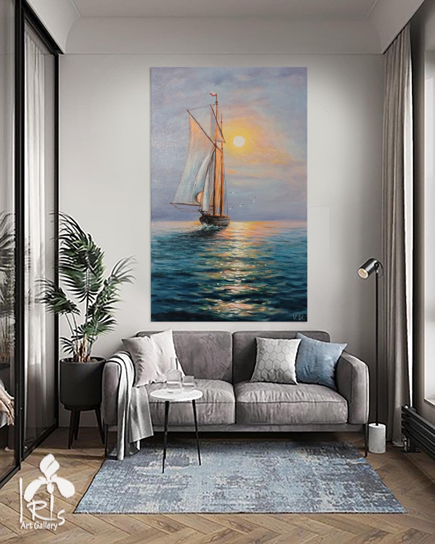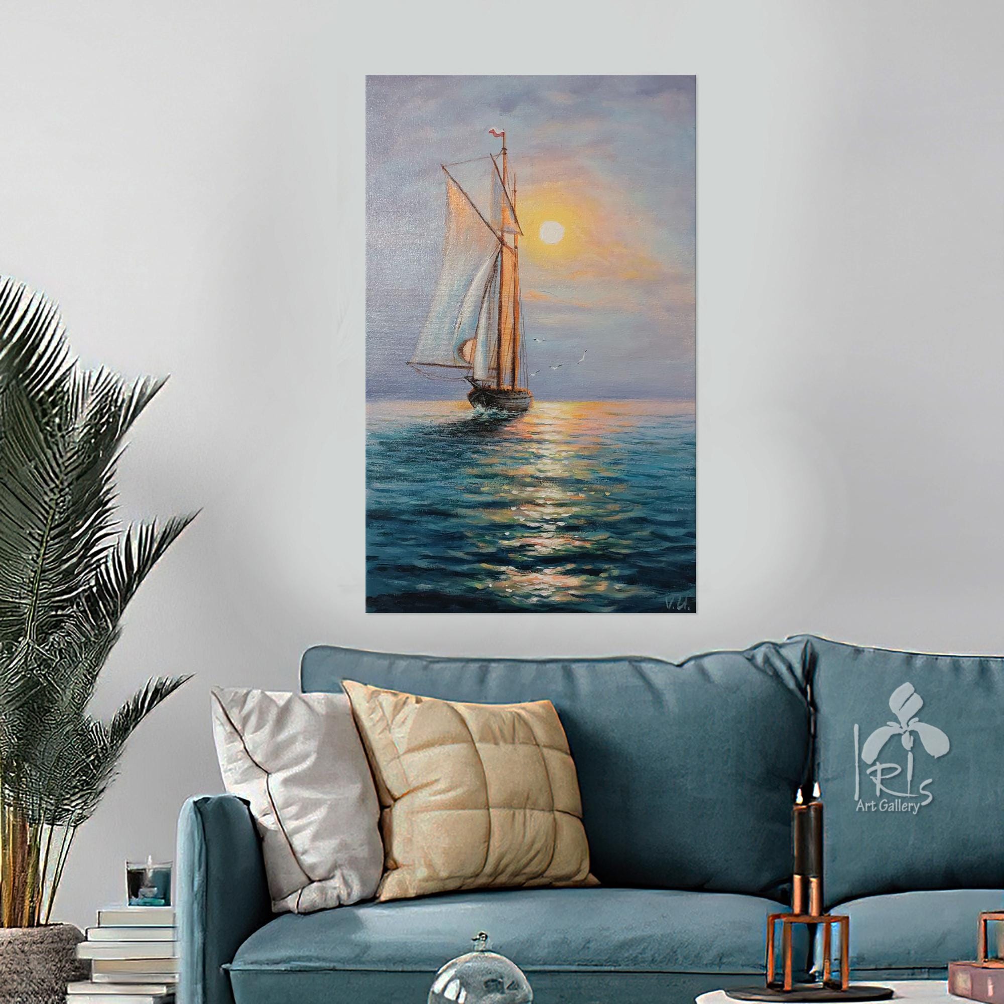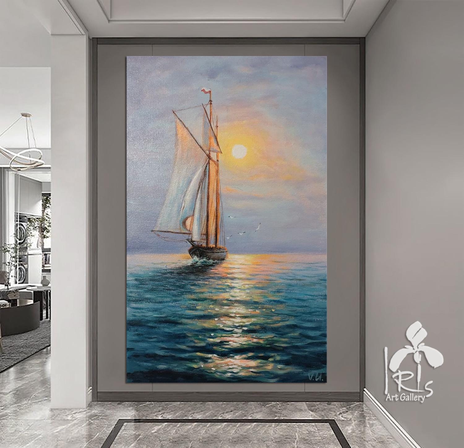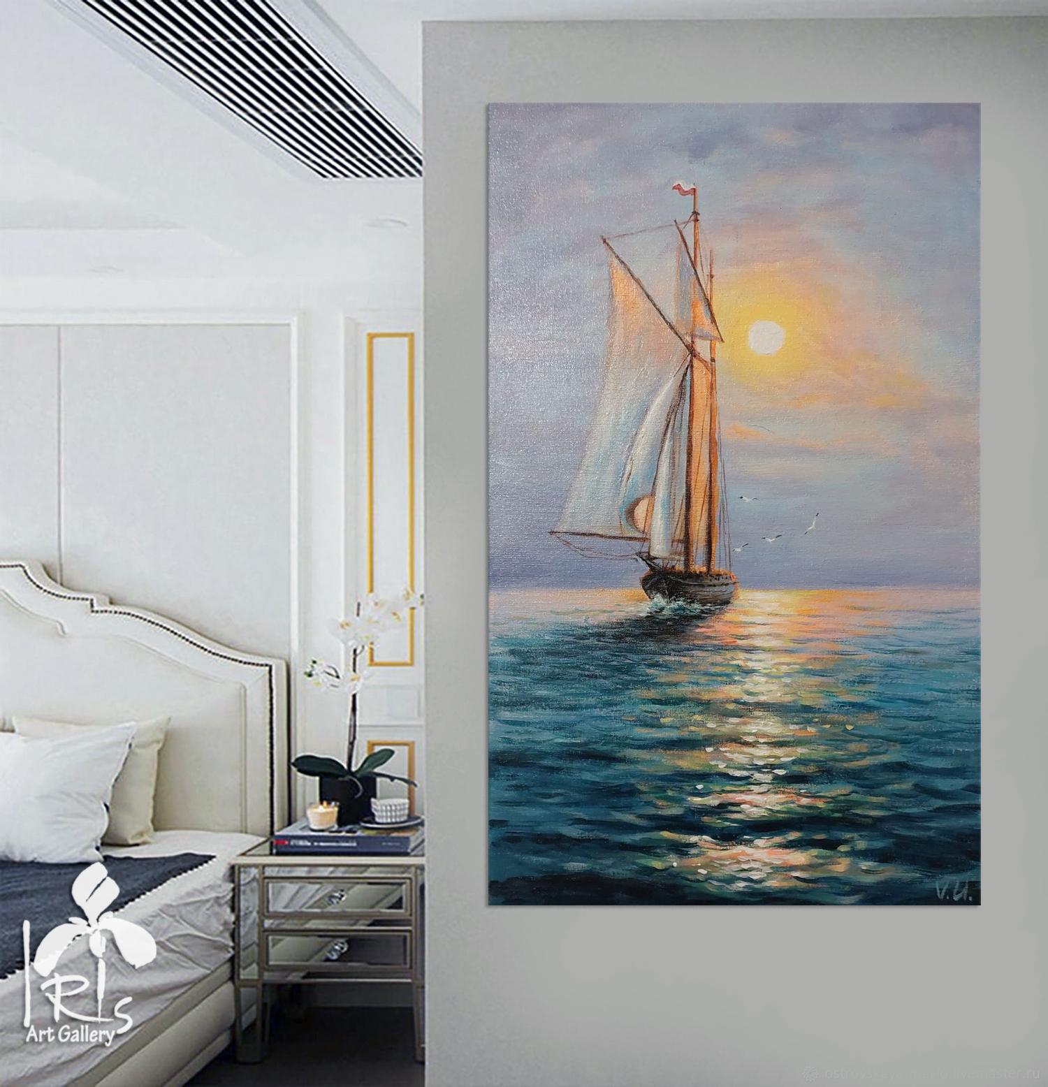 This realistic handmade seascape painting on canvas features a stylish blue and turquoise palette. You can order this painting in any size. It is painted on natural canvas using high-quality oil and acrylic paints. This seascape will undoubtedly enhance your interior. This painting will look great in a living room, hallway, bedroom, or dining room. It will also be perfect for a wall above a fireplace. It will bring a touch of novelty and seaside freshness to your cozy home. The elegant turquoise and blue colors of this painting are calming and energizing. This is an original contemporary painting by the artist. You can order this painting either as a finished piece or as a roll. The exceptionally high, professional quality of the rendered waves and texture are the defining features of this wonderful painting. I guarantee that your order will be just as good as the sample shown here. Before shipping, I will send you a photo of your order so you can see for yourself. This painting is eco-friendly and odorless. A sea wave will perfectly decorate your home, bringing beauty and joy. The texture of this painting perfectly highlights the subject matter. Free shipping on paintings will save you money.